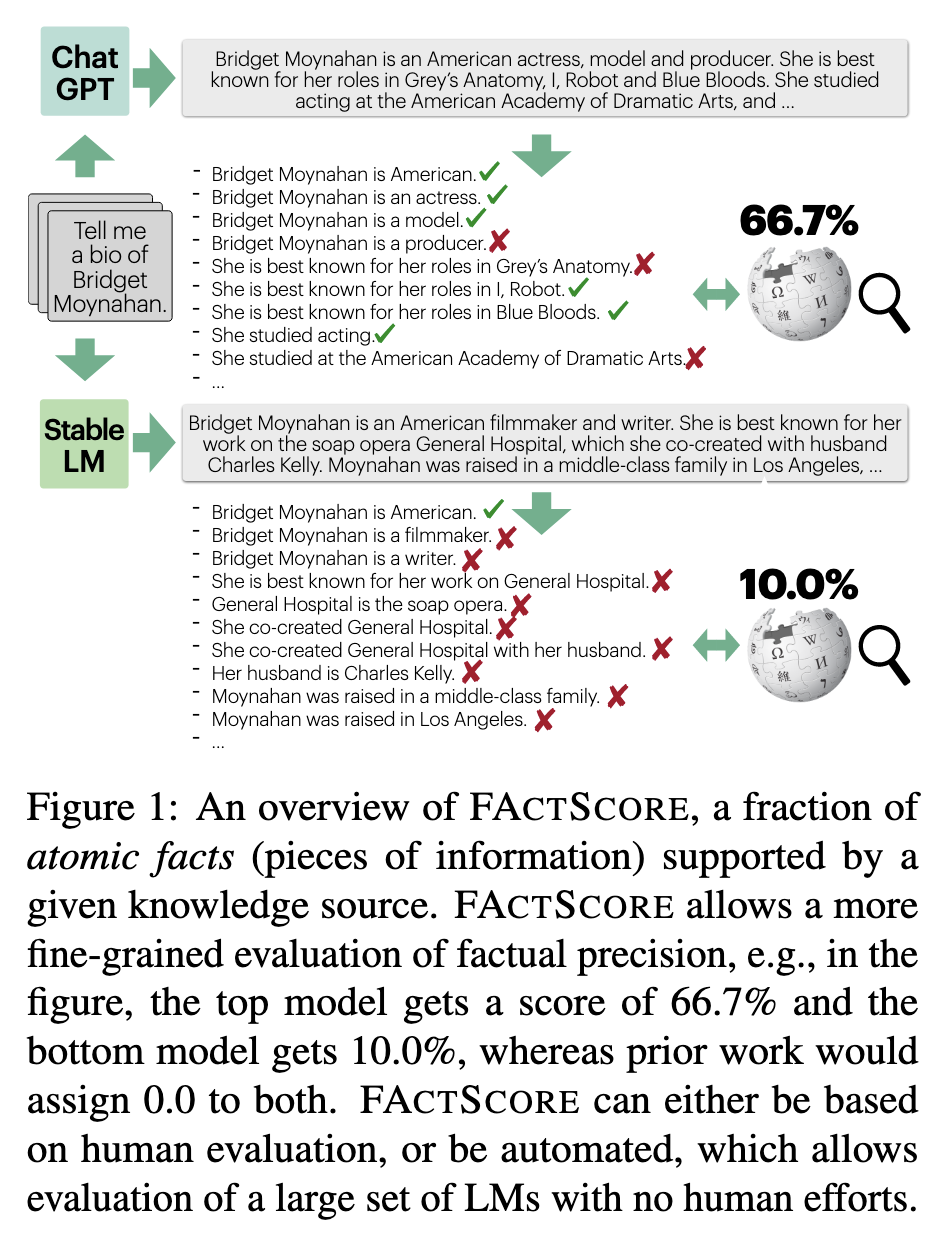 提出了一种能计算在确定信息源的情况下,有多少的atomic facts是被支持的metric。